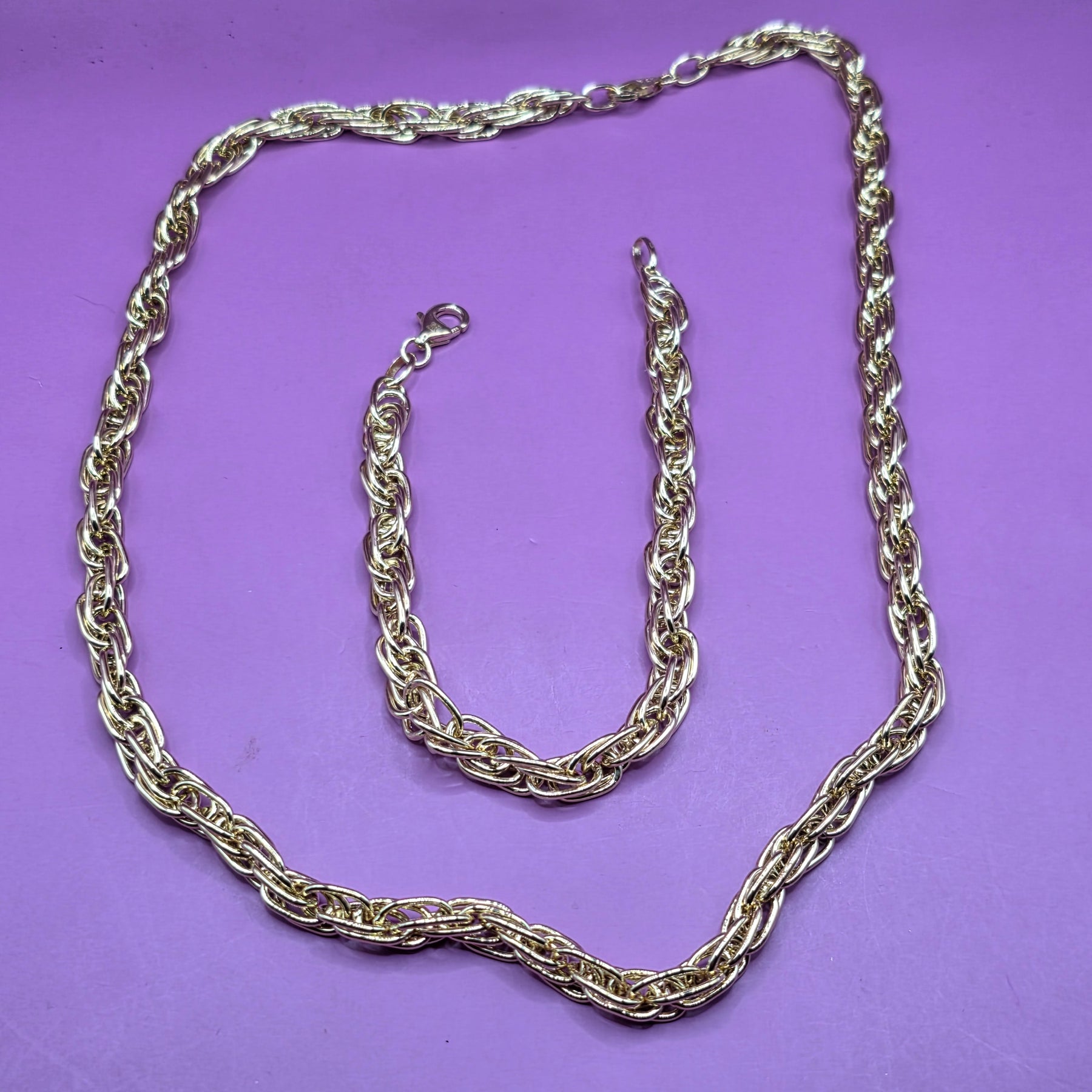 14K Gold Long Link Rope Bracelet & Necklace Set
