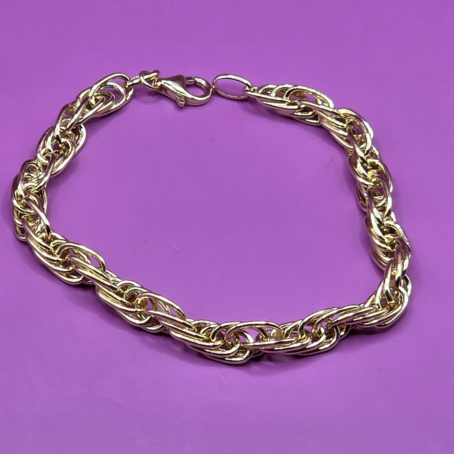 Features: traditional rope bracelet using elongated links.