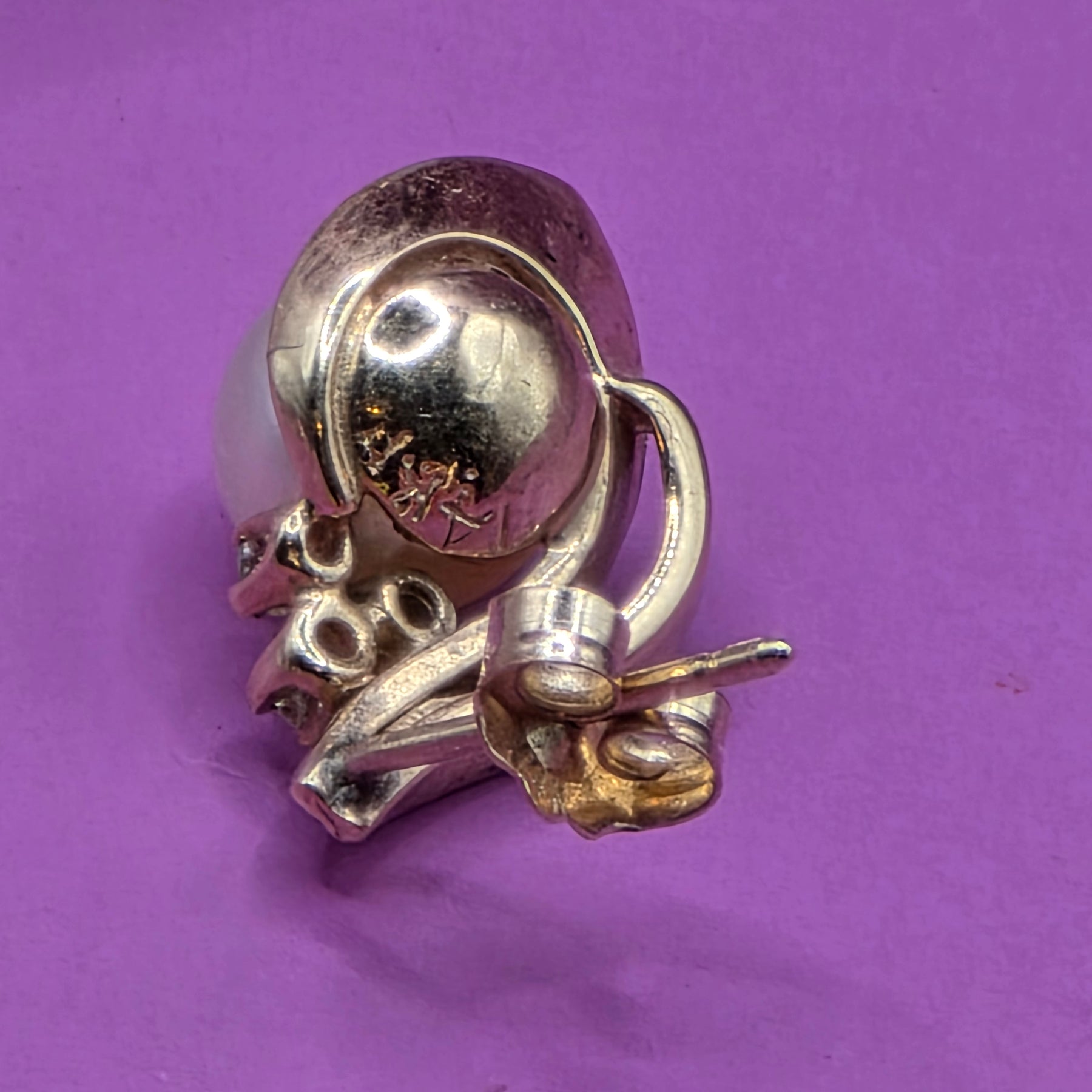 An elegantly bold, beautiful pair of 14K gold pearl stud earrings. Each pearl is accented by 3 prong set diamond chips. These teardrop shaped earrings are perfect for a formal or casual outfit and would make a great gift for that special young lady in your life...or for yourself.