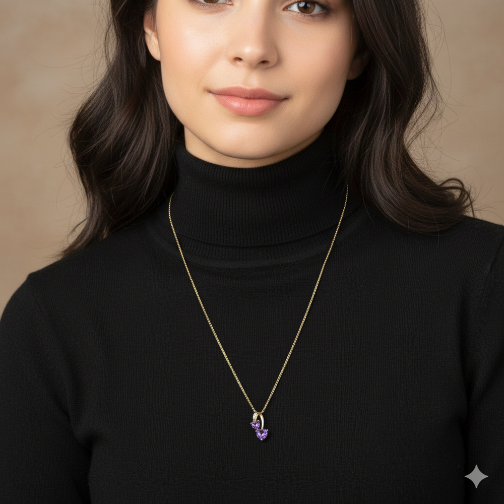 Gold, Amethyst & Diamond Symmetrical Heart Necklace