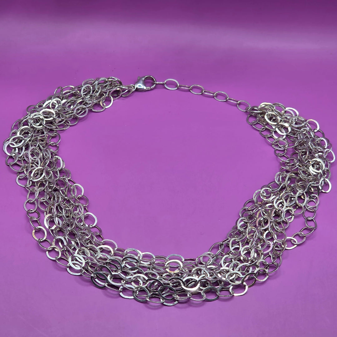 Mid-Century Modern Sterling Silver 10 Strand Chainmail Necklace