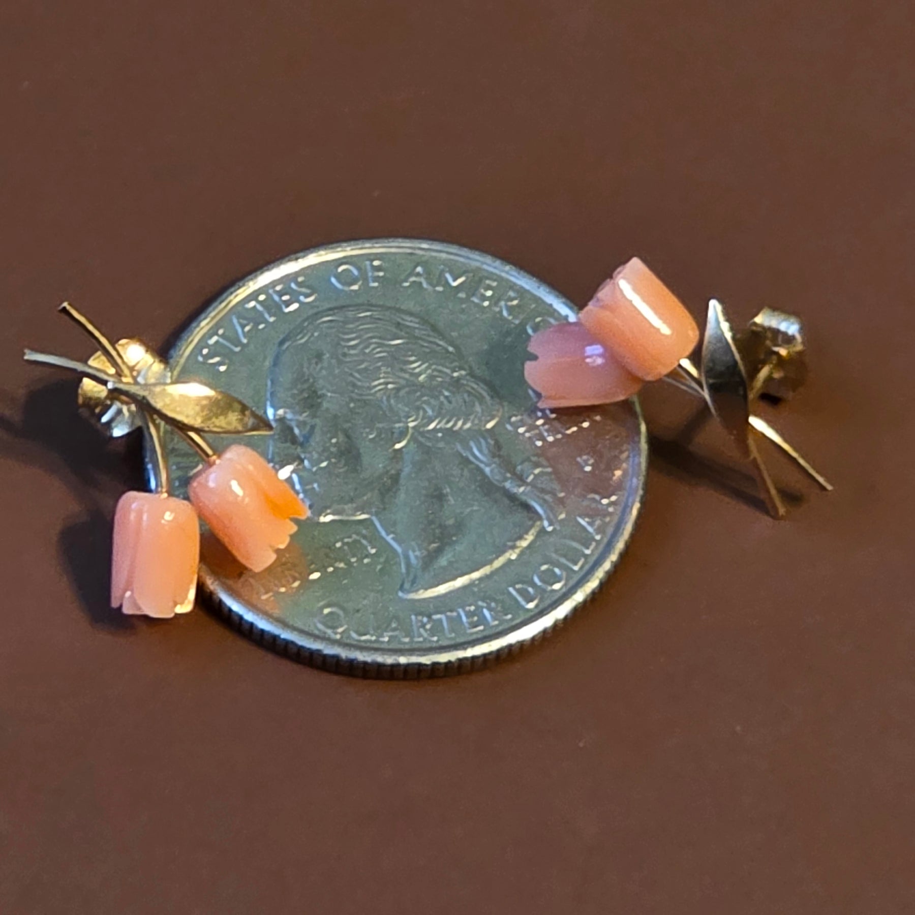 Gold & Floral Coral Stud Earrings
