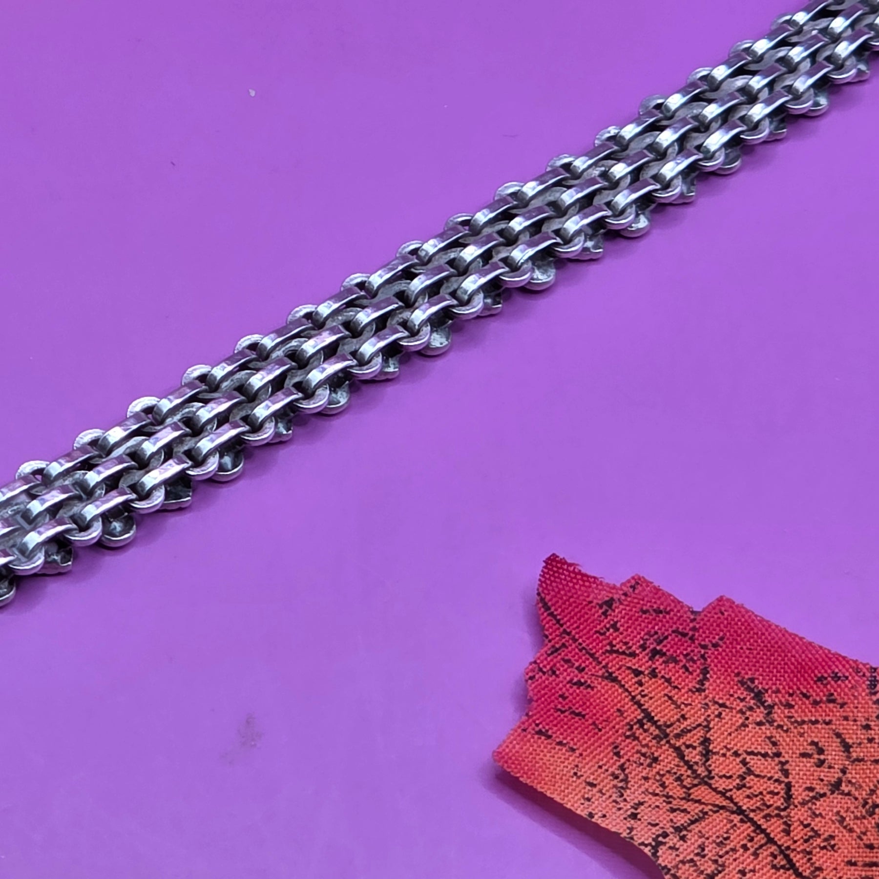 A very appealing, feminine piece - each link resembles a squash heart alternating between smooth and textured. Even the reverse side of the bracelet is impressive in design and can be worn reverse side out. It's a real beauty to fit in with your sterling collection.