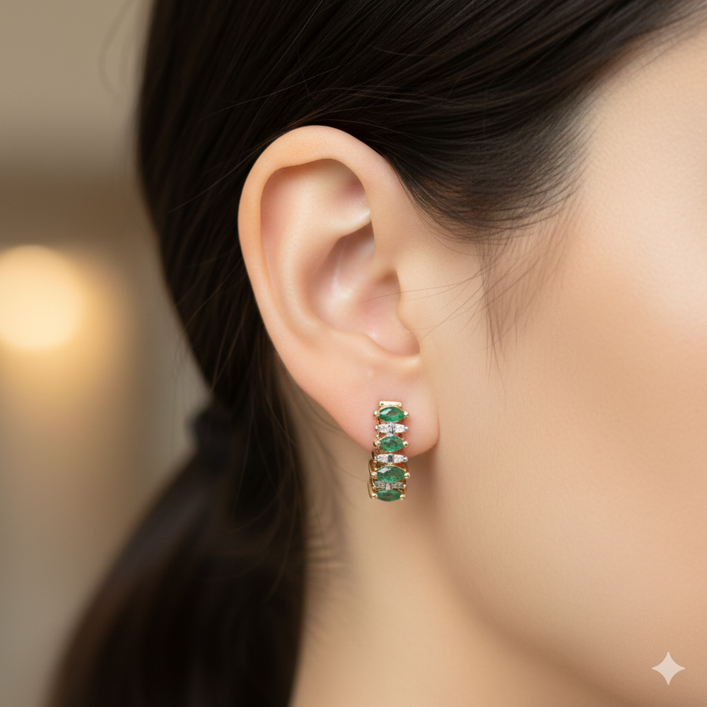 14K Gold Elongated Hoop Diamond Cut Earrings