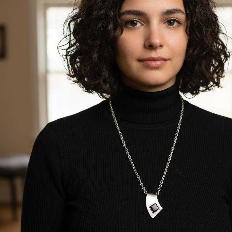 Sterling Silver & Abstract Onyx Pendant Necklace