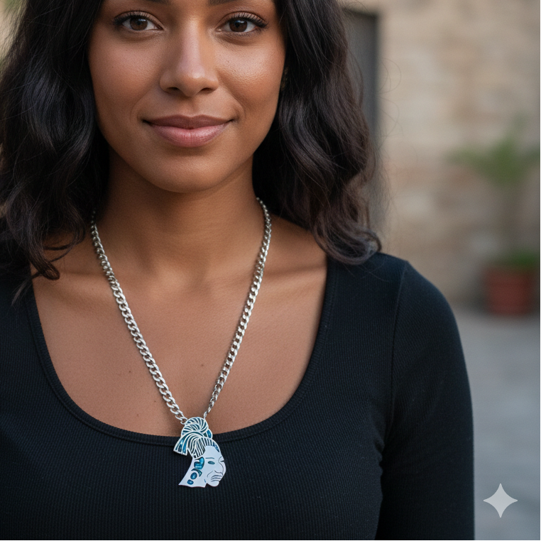Hefty Sterling Silver Aztec Face Mask Necklace