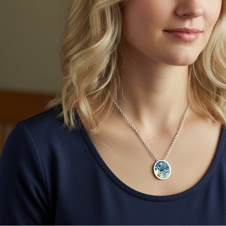 Sterling Silver Mosaic Nature Scene Necklace