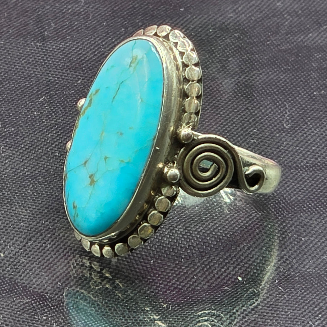 Sterling Silver Long Oval Turquoise Filigree Ring