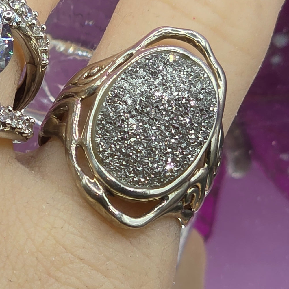 Sterling Silver Druzy (Drusy) Quartz Filigree Ring
