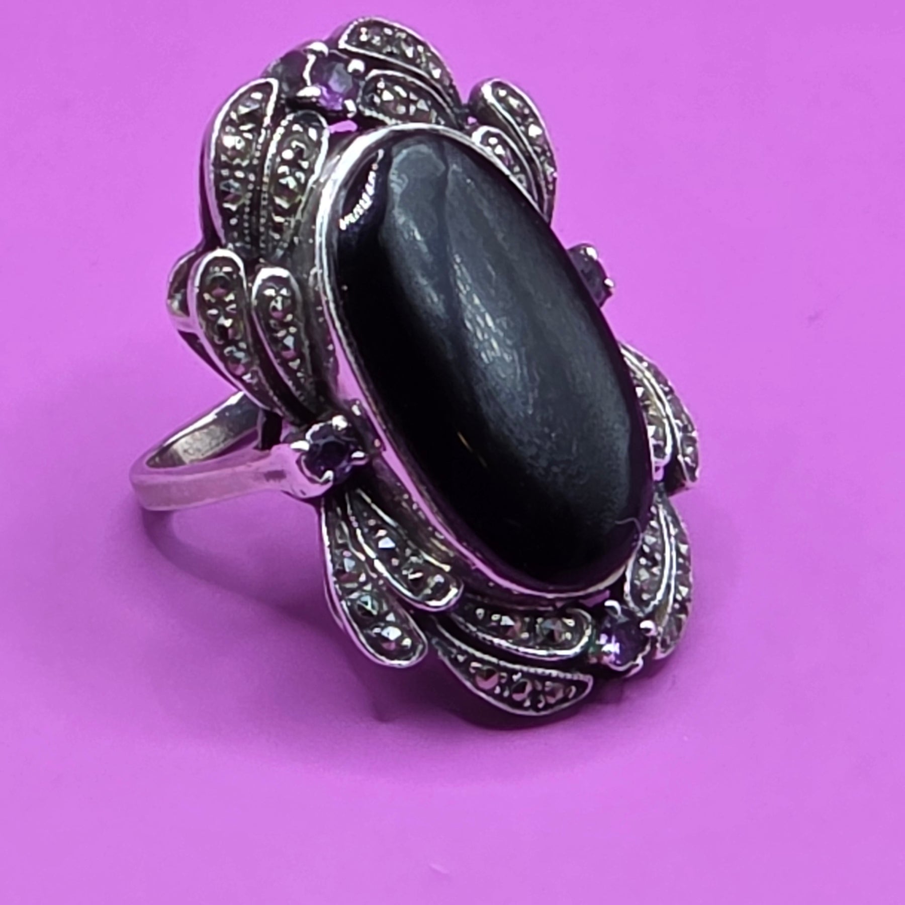Sterling Silver Long Oval Black Tourmaline North-South Ring